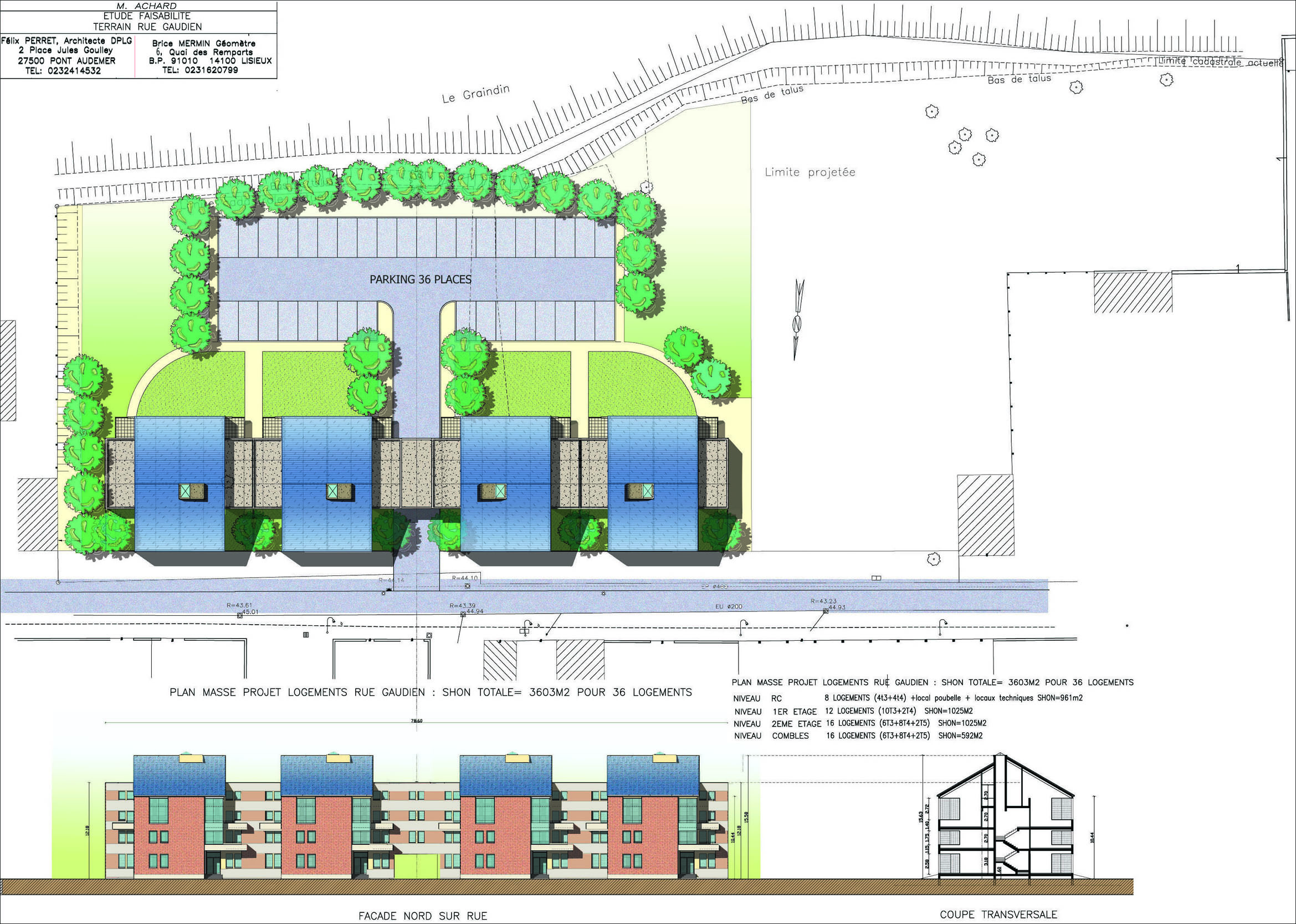 Construction de 36 logements Rue Gaudien, Lisieux.Etude de faisabilité, projet abandonné.