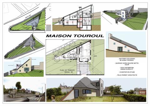 Maître d'ouvrage : M. et Mme TouroulType de mission : conception & permis de construirePermis accepté en 2010Surface : 160m²Montant des travaux : 210 000€ HTCaractéristiques : projet de construction neuve