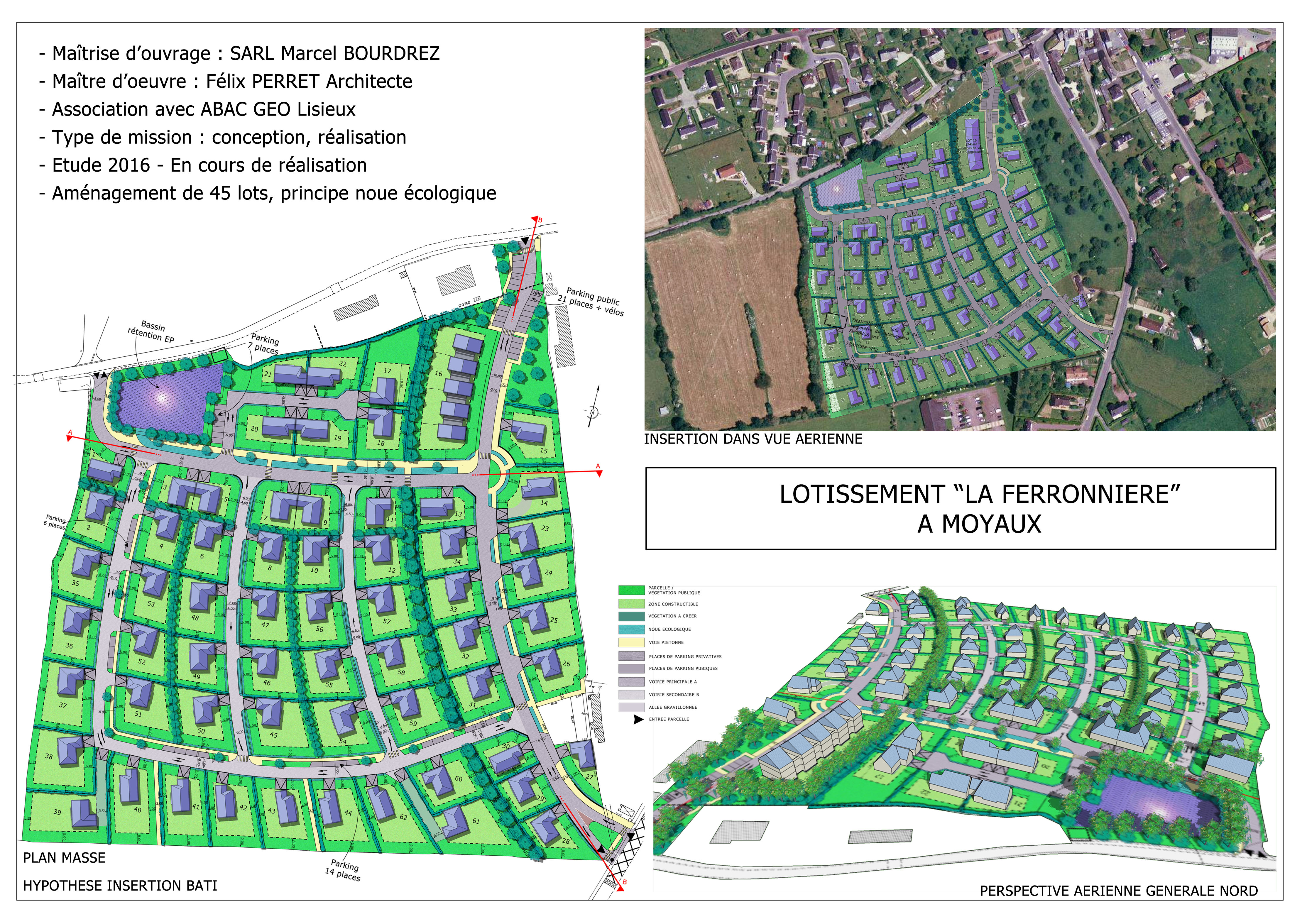 Maître d’ouvrage : SARL Marcel BOURDREZ Association avec ABAC GEO Lisieux Type de mission : Conception, réalisation Etudes en cours Caractéristiques : 45 lots, principe d’une noue écologique