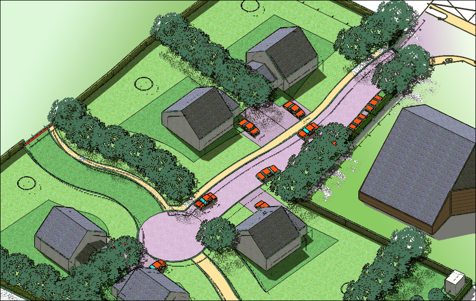 Maître d'Ouvrage: Commune de Crevecoeur en Auge (14) Association avec ABAC GEO Lisieux Type de mission : conception, réalisation Permis obtenu en 2008 Réalisation effectuée Caractéristiques : Aménagement de 5 parcelles d'environ 800m² chacune.