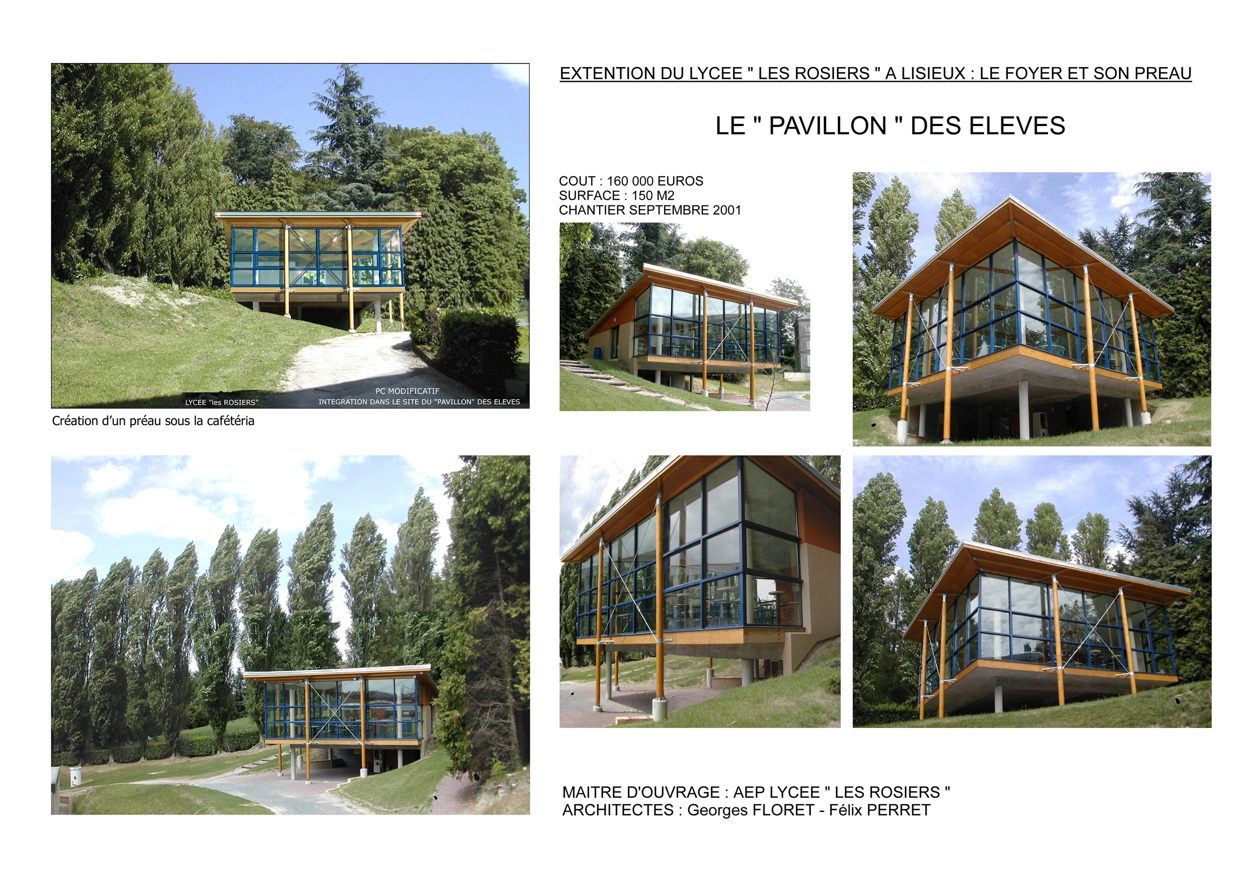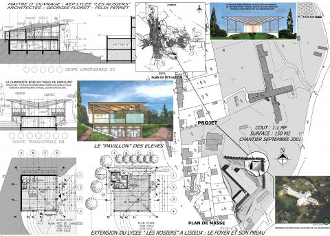 Maître d'ouvrage : Ogec Notre Dame - Frémont - Les Rosiers Type de mission : mission complète Projet réceptionné en Août 2002 Coût travaux : 1 200 000 Francs Caractéristiques : construction neuve d'un foyer / cafétéria "Le pavillon des élèves" à 12m du bâtiment principal existant.