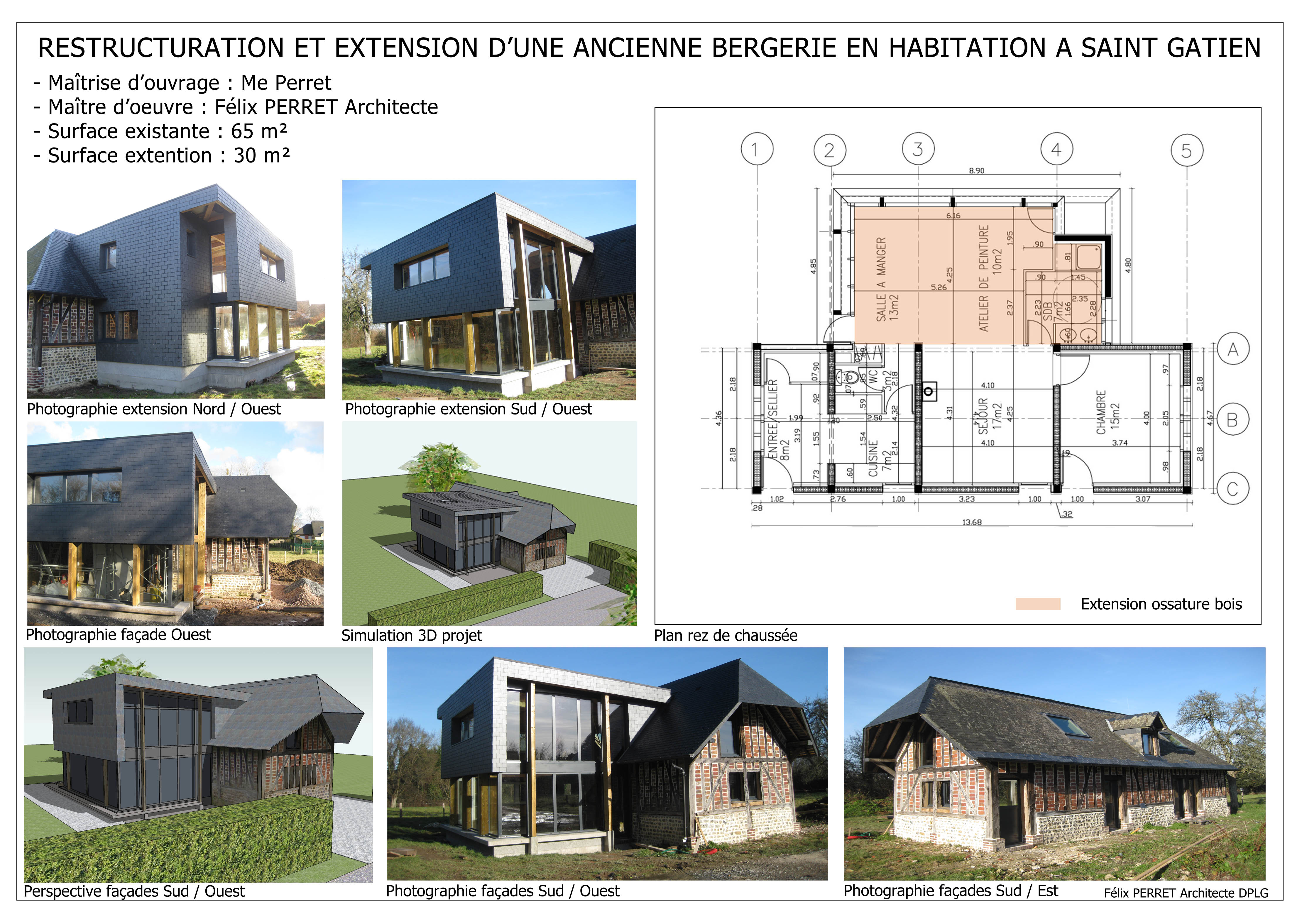 Maître d'ouvrage : Me PerretType de mission : conception & permis de construireChantier en coursSurface existante : 65m²Surface extension : 30m²