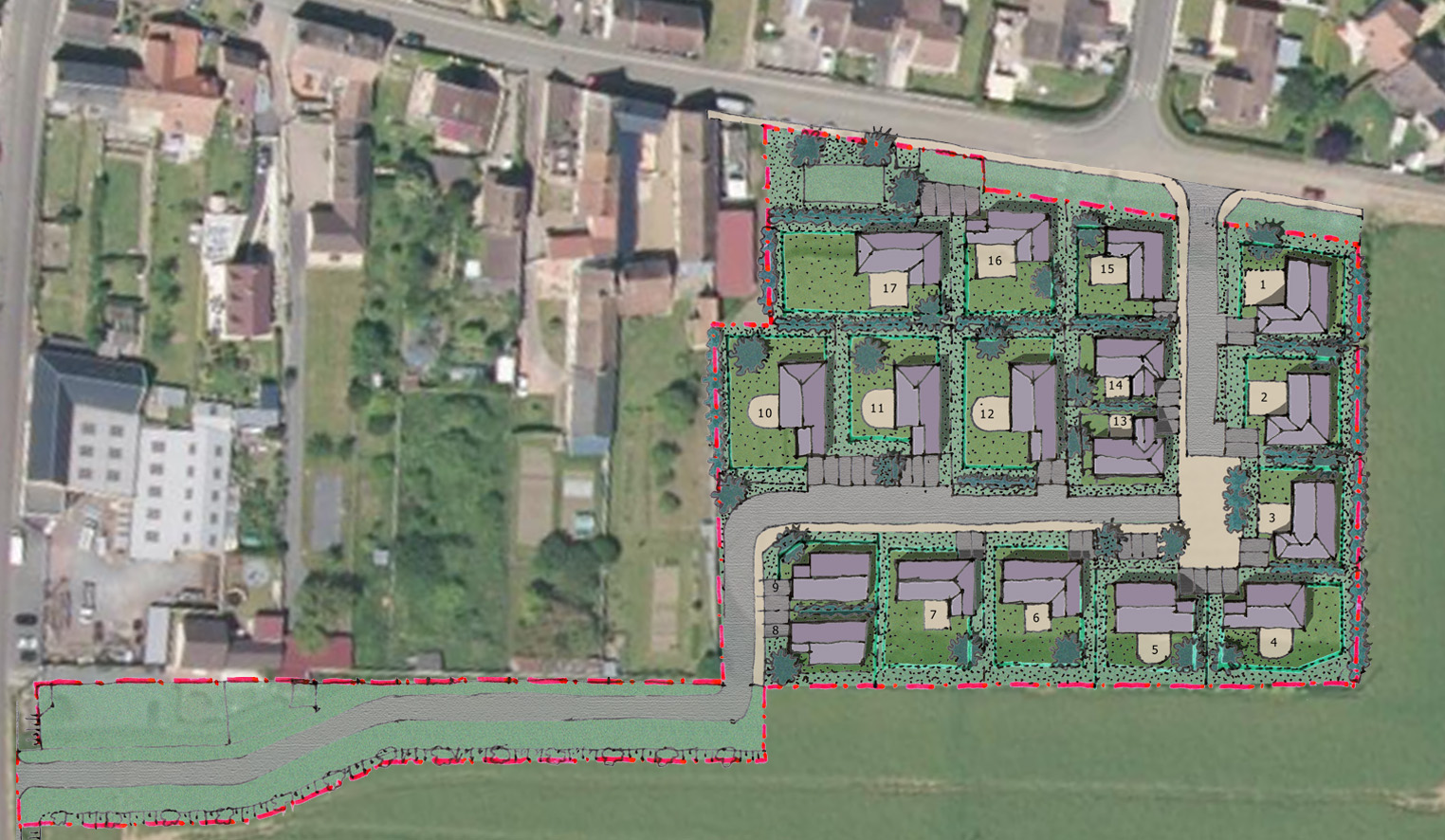 Maître d’ouvrage : VESTAMAssociation avec AménagéoType de mission : Conception, réalisationEtude en cours 2022Caractéristiques : Division d’une parcelle de 10081m² en 17 lots